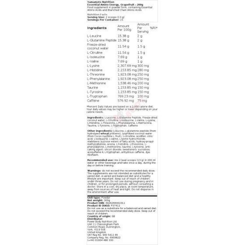 | الاسم التجاري | تتنوع حسب العلامة التجارية والتركيبة (على سبيل المثال، أمينوكس، أوبتيموم نيوترشن إسينشيال أمينو إنيرجي) |